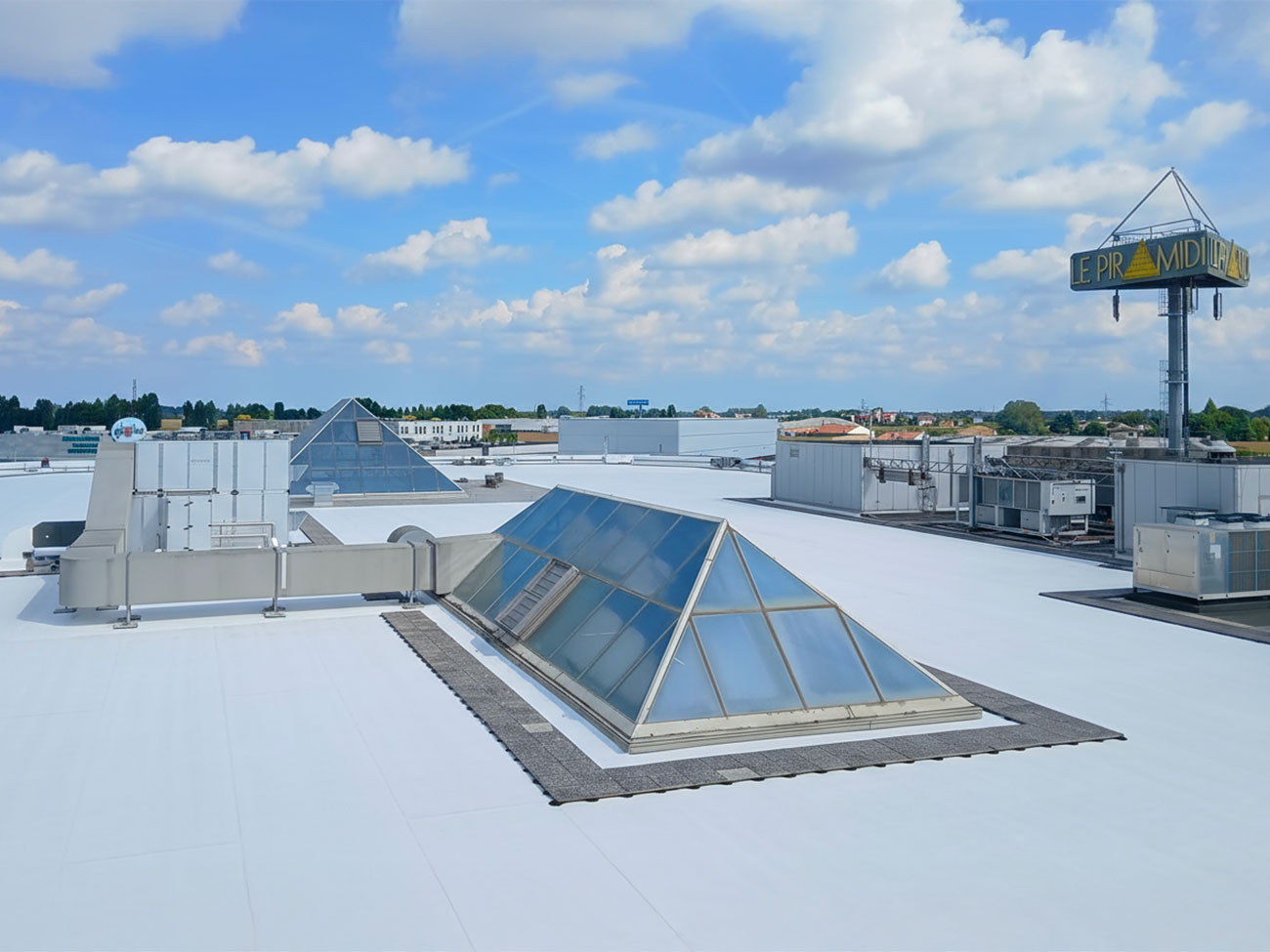 Waterproofing works have been completed at the Le Piramidi Shopping Centre, one of the most prominent retail complexes in the Veneto region, located in the municipality of Torri di Quartesolo (VI). The project began in May 2025 and involved a total roof surface area of 13,000 m².