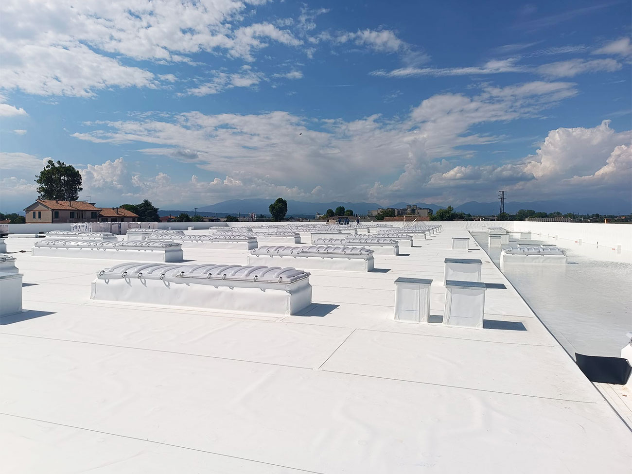 The intervention involved the installation of a waterproofing system certified Broof T2, selected to ensure high fire safety performance and long-term durability.